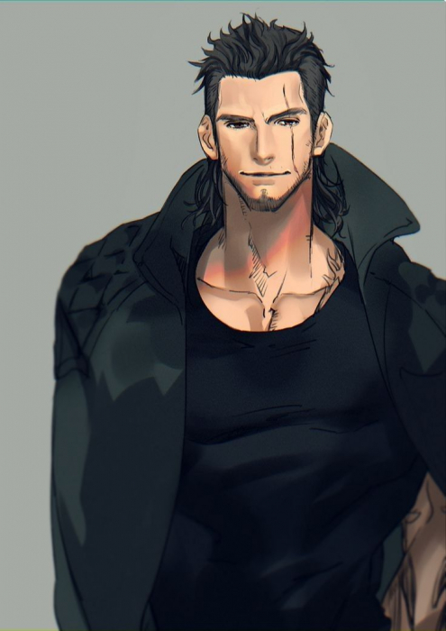 С противоположного входа, навстречу мне вышел крепкий мужчина едва за тридцать. Мускулистое телосложение, вертикальный шрам, проходящий через один глаз, но не задевающий его, длинные черные волосы зачёсанные назад и карие глаза. Вместе с лёгкой щетиной и неряшливо накинутым на плечи зелёным охотничьим плащом, он создавал образ крутого и опытного Охотника. Ощущался этот парень как маг на первой ступени Высокого уровня, а судя по названию группы его основной элемент это земля.