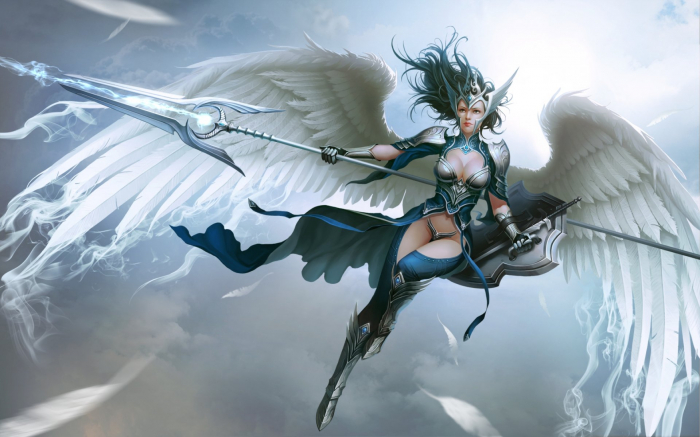 Также, помимо тканевых вкладок в броне присутствовали металлические элементы, прикрывающие важные части, но даже они были сделаны из особой руды, пропитанной под завязку элементом ветра. За спиной у девушки покачивались практически невесомые крылья, будто состоящие из воздушных потоков. В общем, создавался практически противоположный образ громозкому доспеху ТуТу. Да даже вместо стандартного среднего меча, в руках девушка держала длинное копьё с раздвоенным наконечником, усиливая противопоставление.