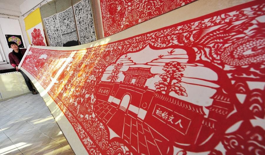 Искусство вырезки из бумаги имеет долгую историю, оно возникло во времена династий Шан или Чжоу и передавалось из поколения в поколение до наших дней. Основным сюжетом этих простых и безыскусственных произведений из бумаги является труд и жизнь простого народа. Узоры из бумаги, создаваемые в уезде Аньсай провинции Шаньси широко известны во всем мире.